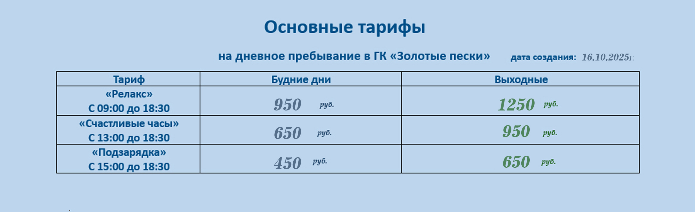 | Дети от 6-ти до 12-ти лет | 500 руб. | 1000 руб. | 500 руб. |